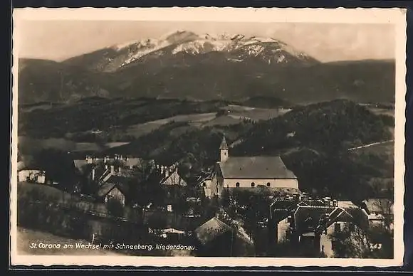 AK St. Corona am Wechsel, Ortsansicht mit Schneeberg
