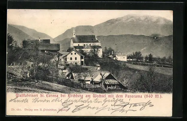 AK St. Corona am Wechsel, Totalansicht mit Wallfahrtskirche