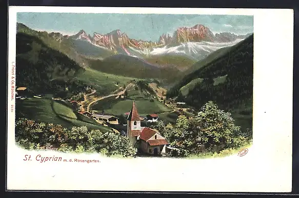AK St. Cyprian, Ortsansicht mit dem Rosengarten