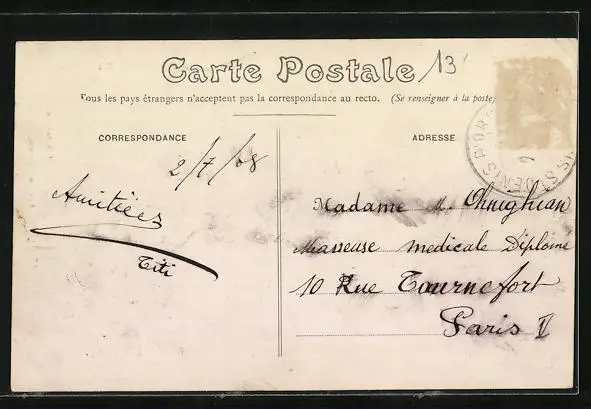alte Ansichtskarte, gelaufen 1908, Briefmarke entfernt, Eckknick oben li., guter Zustand