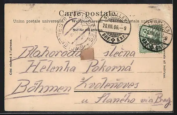 gelaufen 1906, rückseitig Klebe- und Papierreste, guter Zustand