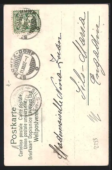 alte Ansichtskarte, gelaufen 1907, Stempelspur, guter Zustand