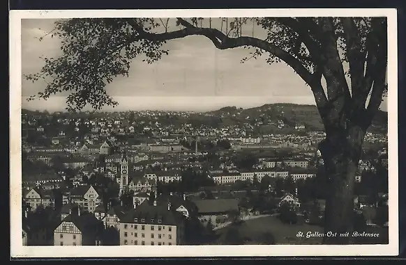 AK St. Gallen, Stadtansicht mit dem Bodensee