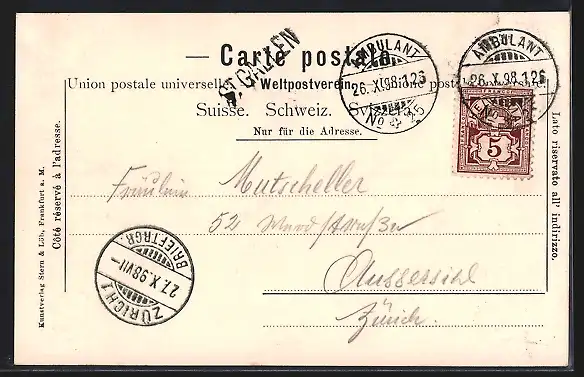 alte Ansichtskarte, gelaufen 1898, Stempelspur, guter Zustand
