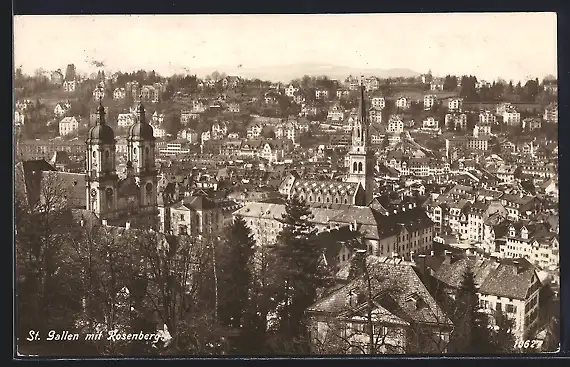 AK St. Gallen, Totalansicht mit Rosenberg aus der Vogelschau