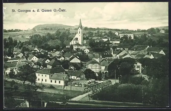 AK St. Georgen a.d. Gusen, Ortspartie mit Kirche