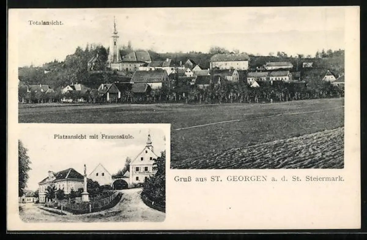 AK St. Georgen an der Stiefing, Platzansicht mit Frauenkirche