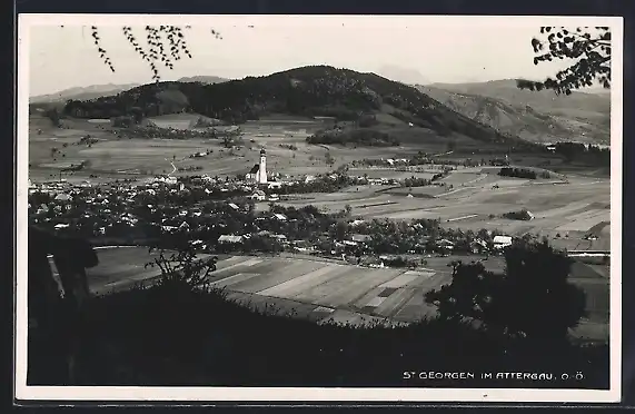 AK St. Georgen im Attergau, Teilansicht mit Kirche