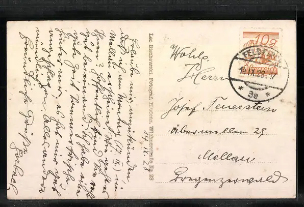 gelaufen 1928, Einriss li. mittig, guter Zustand