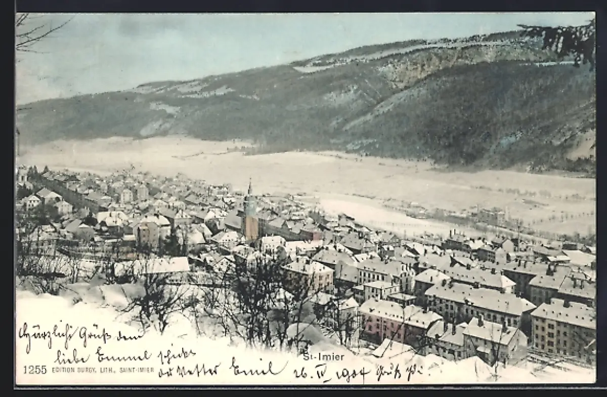 AK St-Imier, Totalansicht mit Bergpanorama im Winter
