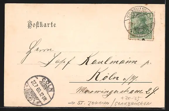 alte Ansichtskarte, gelaufen 1903, guter Zustand
