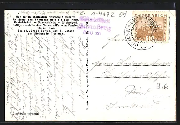 AK St. Johann am Wimberg, Blick zum Gartenlokal Hansberg