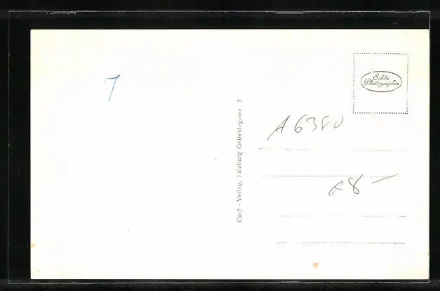 Personenbezogene Daten auf der Rückseite der Karte wurden durch blauen Textmarker unkenntlich gemacht. Die blauen Stellen sind auf die Vorderseite durchgeweicht und wirken sich negativ auf das Postkartenfoto aus