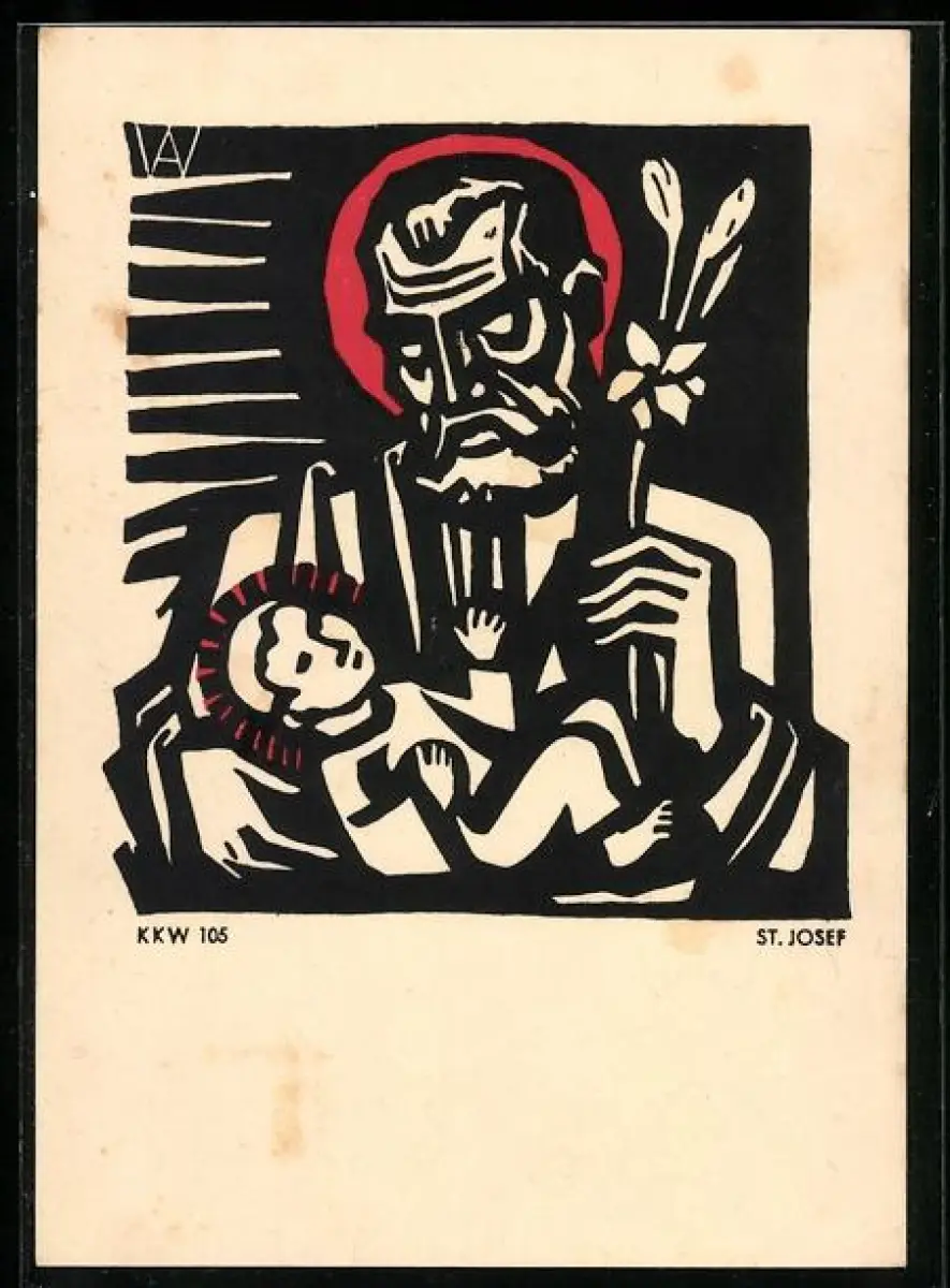 AK St. Joseph mit Christkind, Holzschnitt