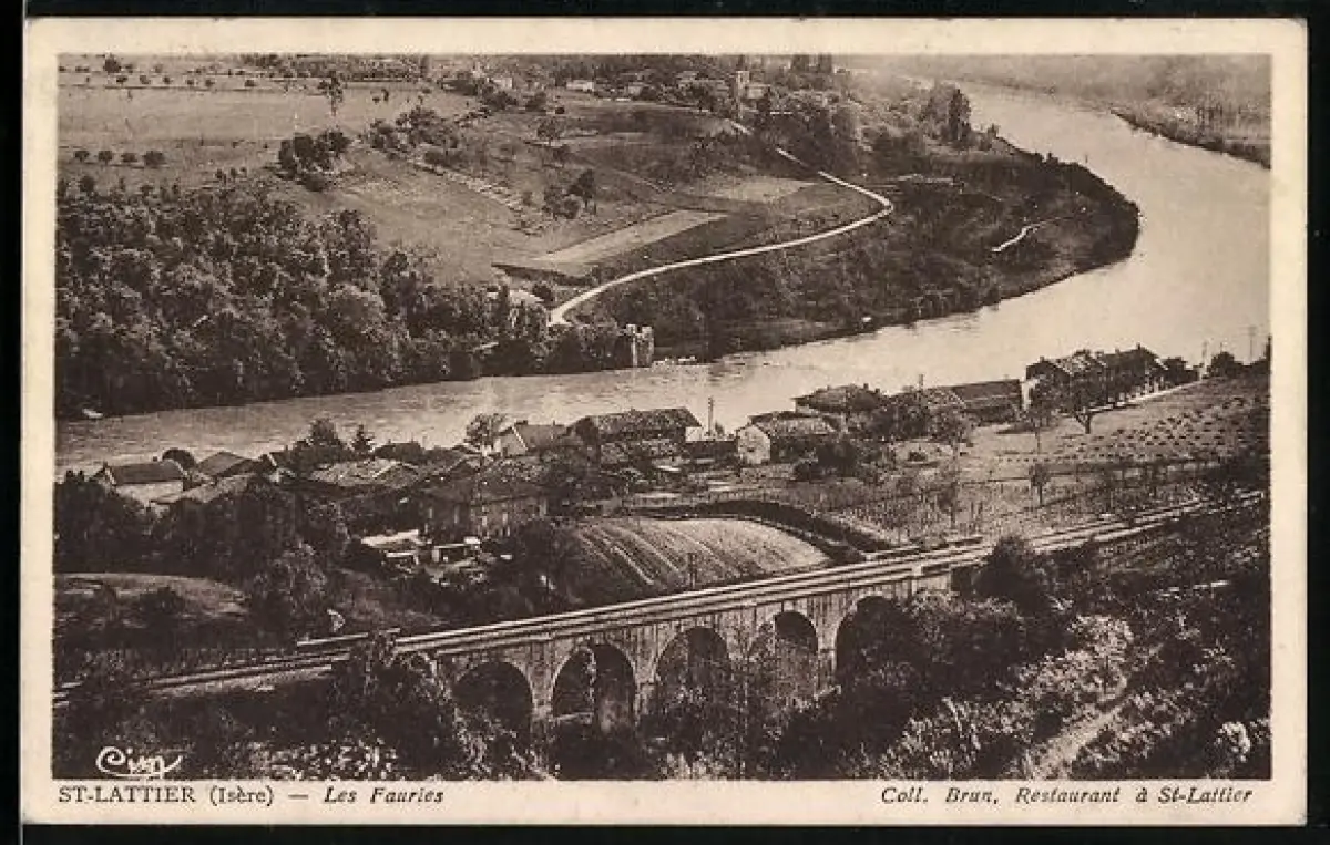 AK St-Lattier /Isère, Les Fauries avec pont ferroviaire et vue sur la rivière serpentine