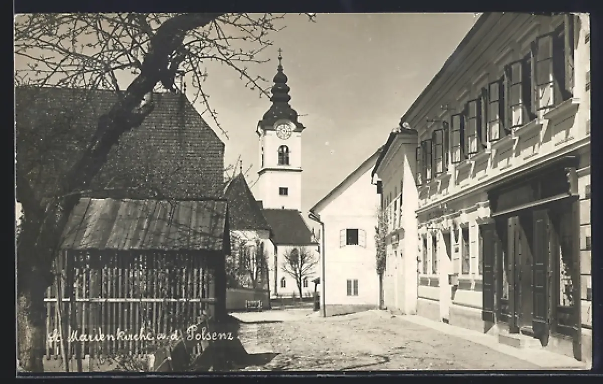 AK St. Marienkirchen a. d. Polsenz, Strassenpartie mit Kirche