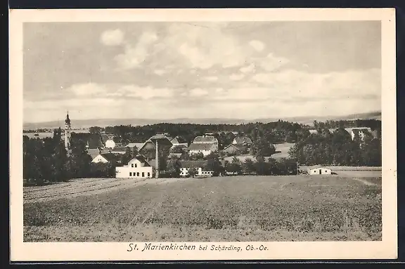AK St. Marienkirchen bei Schärding, Ortspartie mit Kirche
