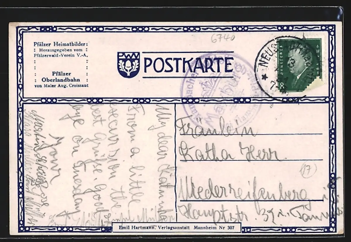 alte Ansichtskarte, gelaufen 1921, Briefmarke entfernt, guter Zustand