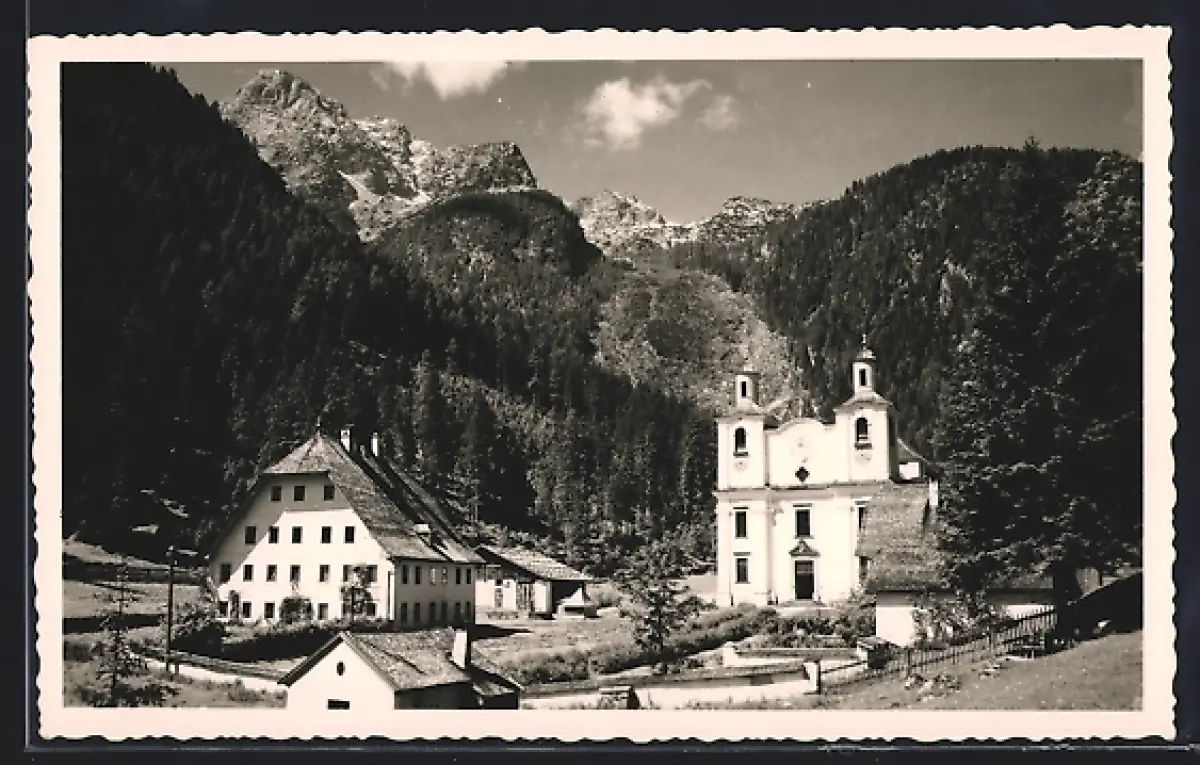 AK St. Martin bei Lofer, Kirchental mit Kirche gegen die Berge