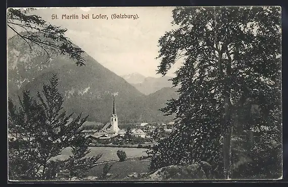 AK St. Martin bei Lofer, Ortsansicht mit Kirche
