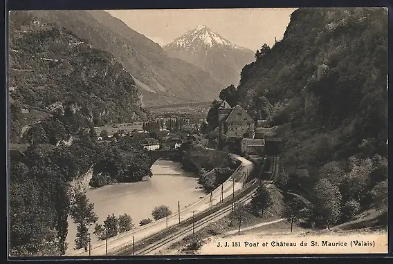 AK St. Maurice, Pont et Chateau de St. Maurice, Eisenbahnschienen