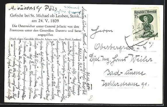 AK St. Michael ob Leoben, Gefecht bei St. Michael, Gemälde v. Albrecht Adams
