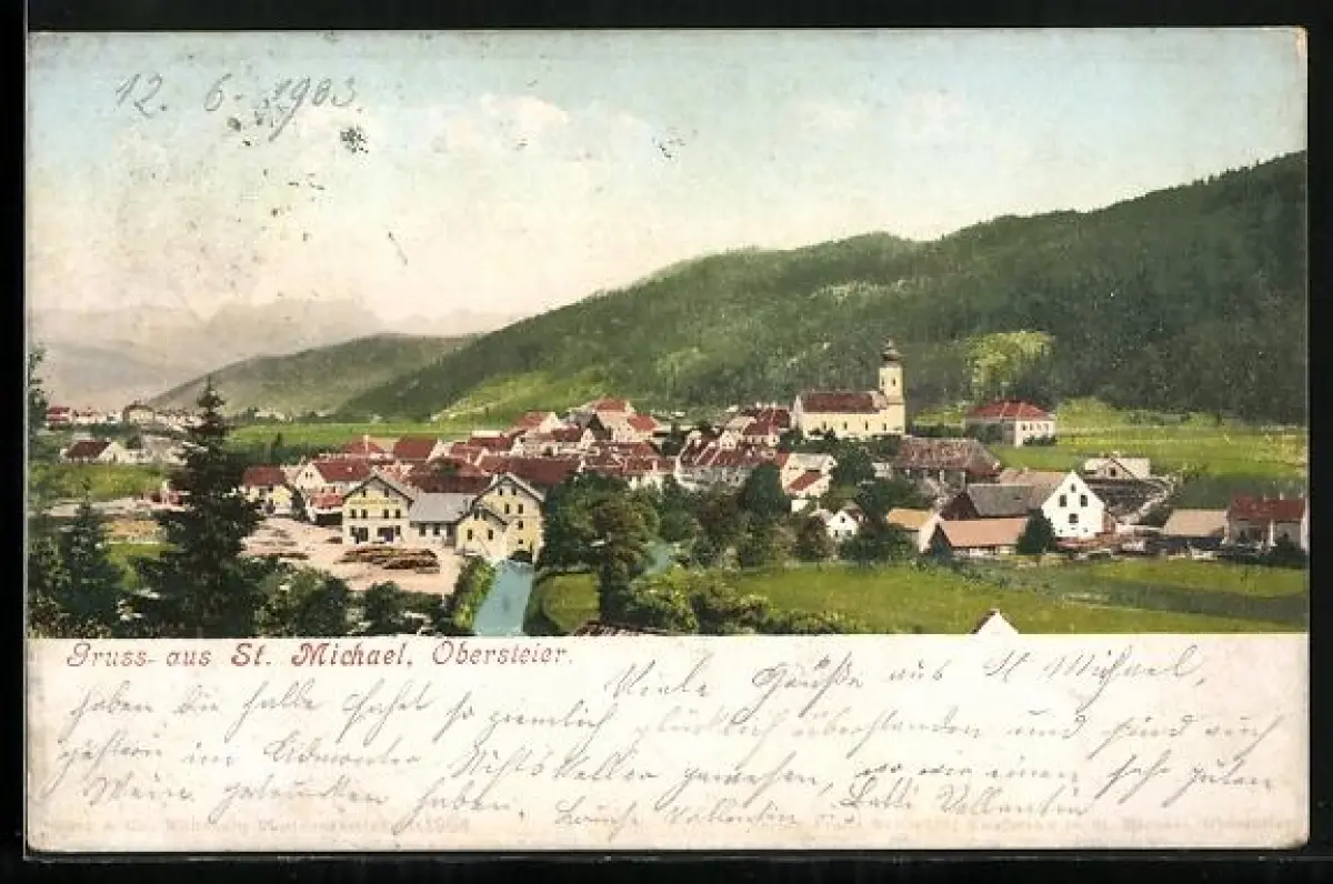 AK St. Michael ob Leoben, Ortsansicht aus der Vogelschau