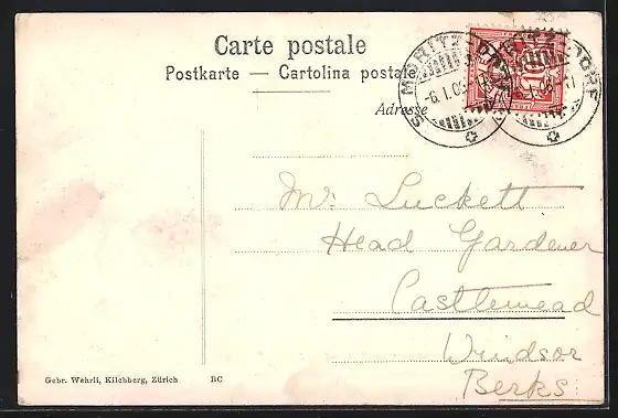 gelaufen 1906, Eckknick oben li., guter Zustand