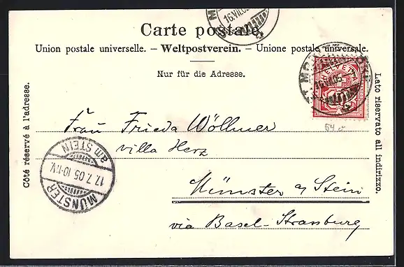 alte Ansichtskarte, gelaufen 1905, Eckknick oben re., guter Zustand