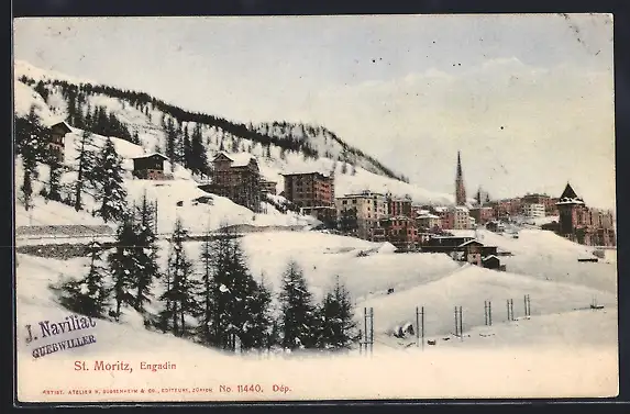 AK St. Moritz /Engadin, Teilansicht im Schnee