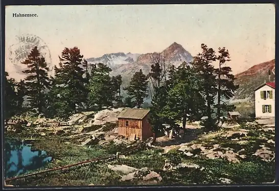 AK St. Moritz, Hahnensee, Ortspartie mit Blick in die Berge