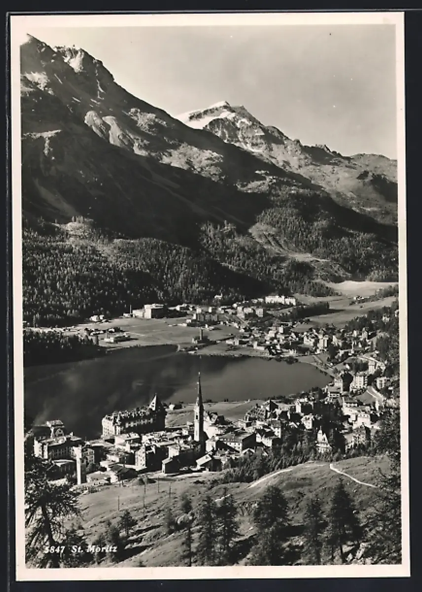 AK St. Moritz, Ortsansicht aus der Vogelschau