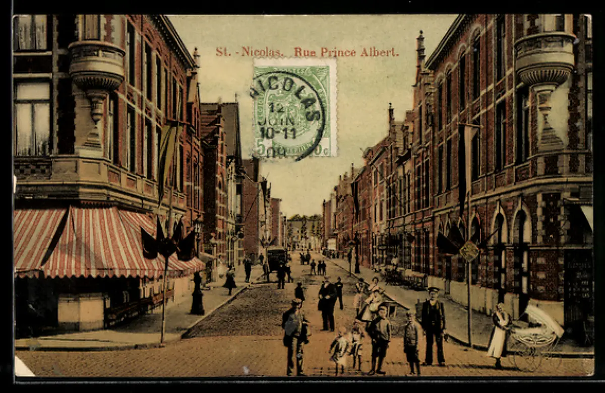 AK St.-Nicolas Rue Prince Albert mit Leuten