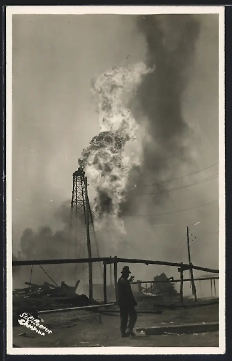 AK St. Oleanu, Erdöl, brennender Förderturm