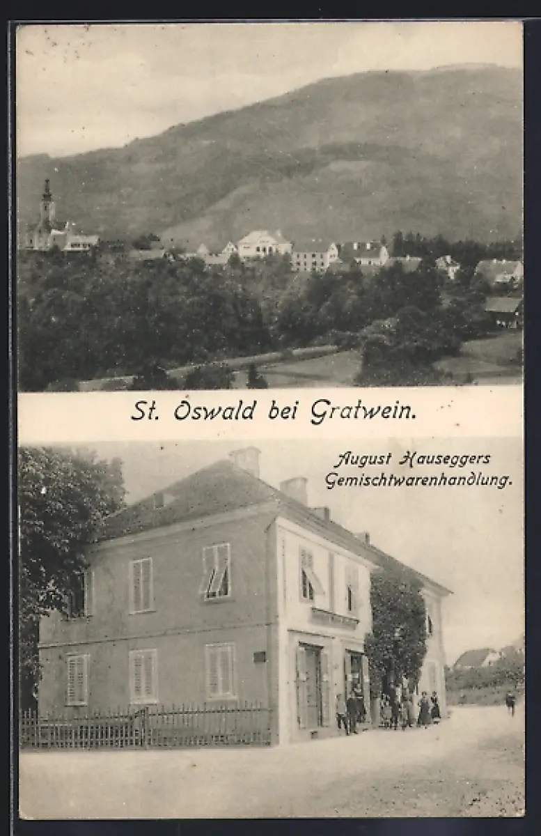 AK St. Oswald bei Gratwein, August Hauseggers Gemischtwarenhandlung