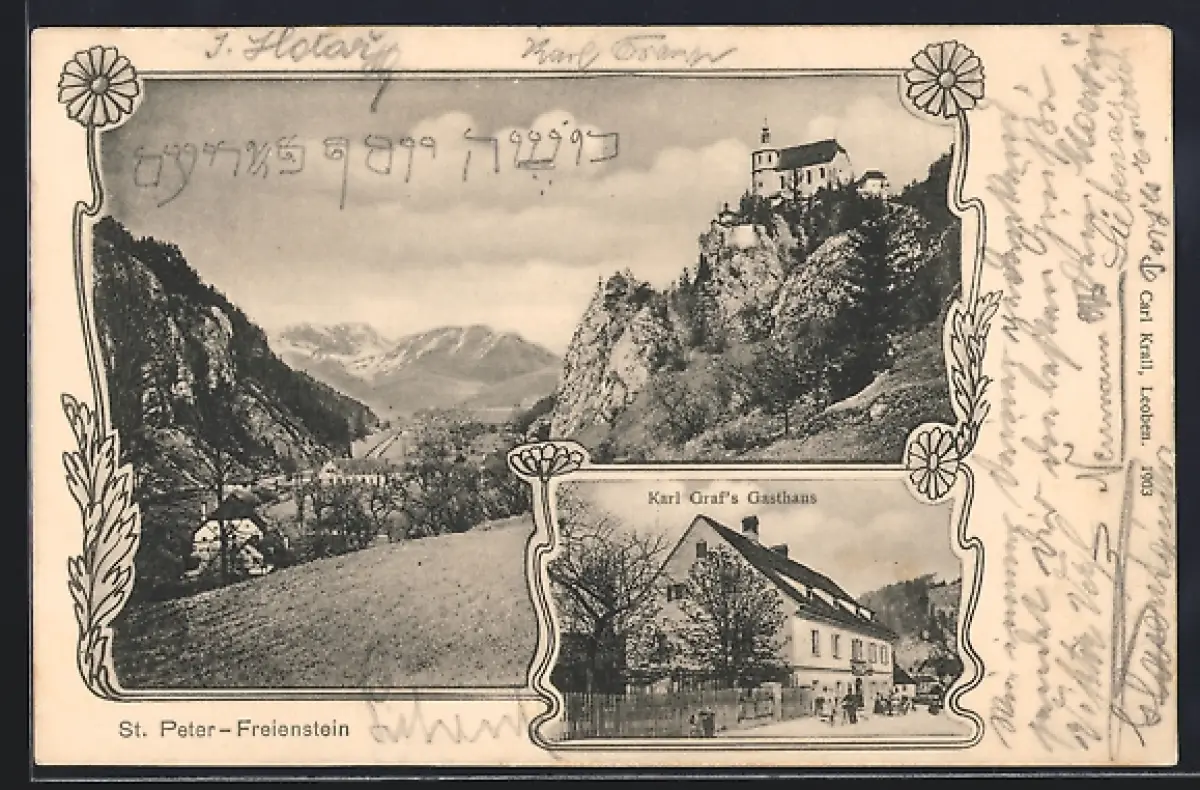 AK St. Peter /Freienstein, Karl Graf`s Gasthaus, Blick auf den Ort
