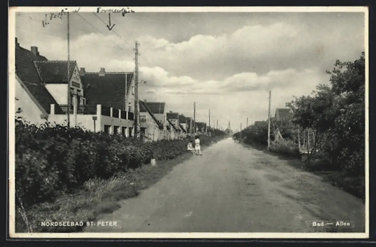 AK St. Peter / Nordsee, Strassenblick in die Allee