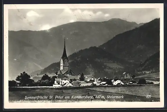 AK St. Peter am Kammersberg, Teilansicht mit Kirche