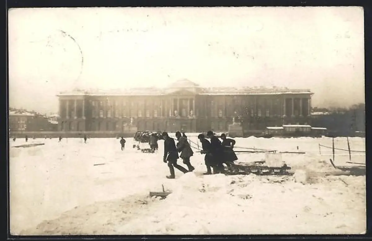 AK St.-Pétersbourg, Neva en hiver devant l`Academie des Arts