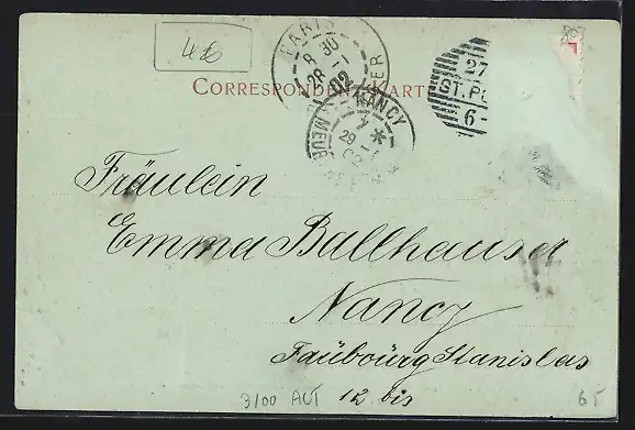 gelaufen 1902, Briefmarke entfernt, rückseitig Oberflächenschaden, guter Zustand