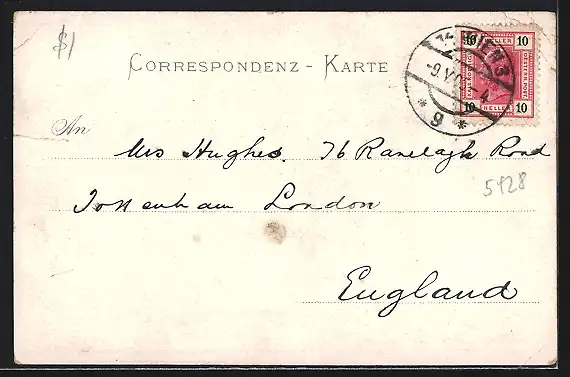 gelaufen 1905, Eckknicke re. oben u. li., Einriss re. oben, guter Zustand