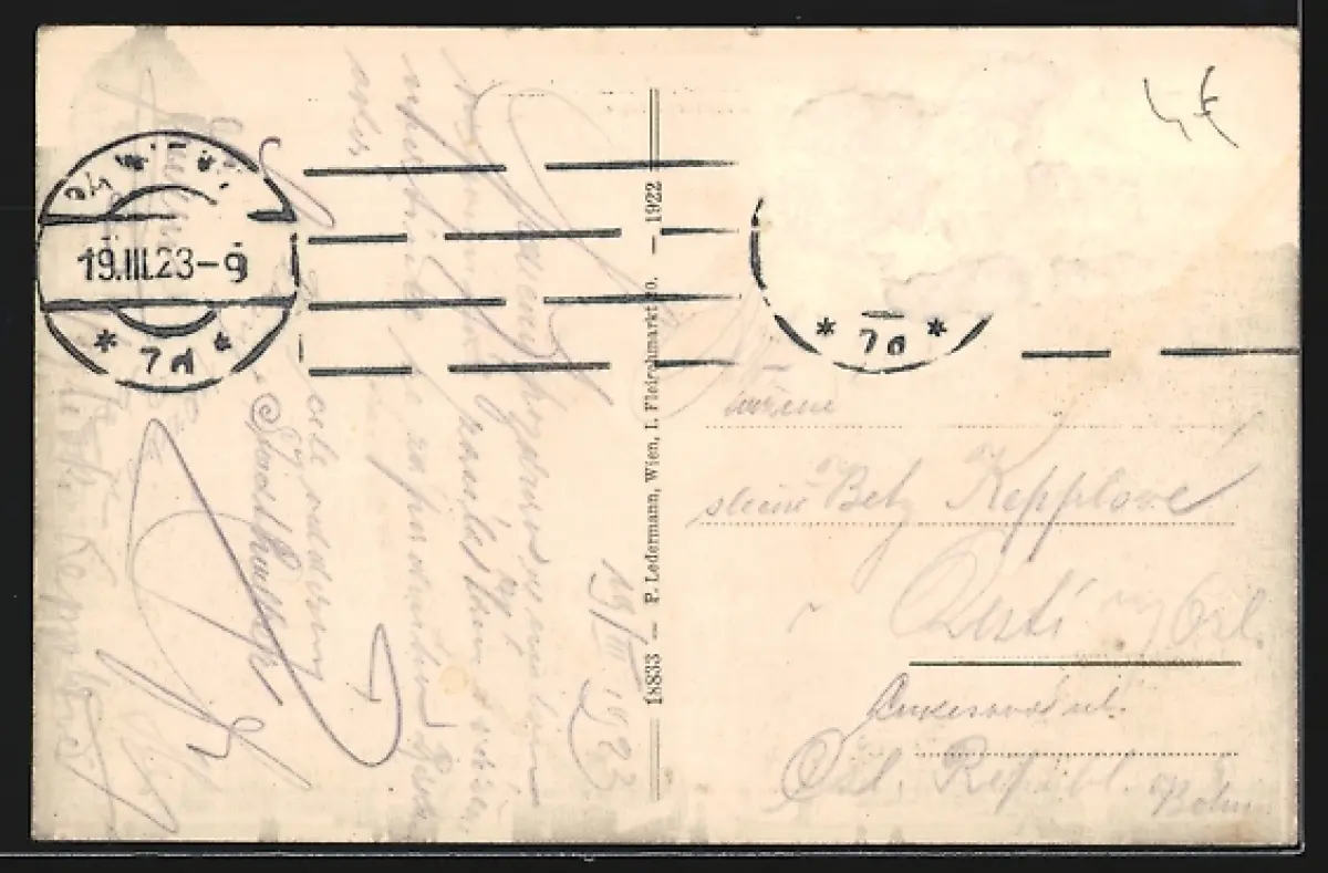 alte Ansichtskarte, gelaufen 1923, Briefmarke entfernt, Stempelspur, rückseitig Oberflächenschaden, sonst guter Zustand