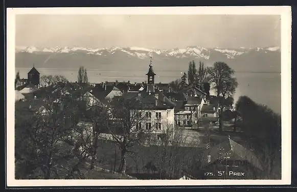 AK St. Prex, Ortsansicht mit Bergpanorama