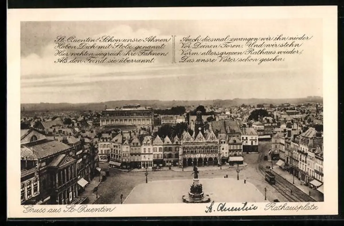 AK St. Quentin, Rathausplatz aus der Vogelschau
