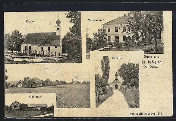 AK St. Radegund, Kirche, Gasthaus und Volksschule