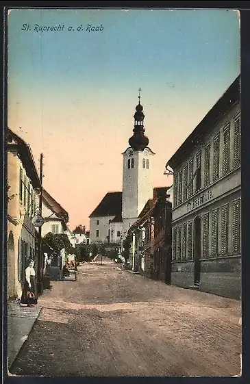 AK St. Ruprecht a. d. Raab, Strassenansicht mit Kirche