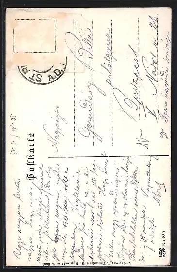 alte Ansichtskarte, gelaufen, Briefmarke entfernt, guter Zustand