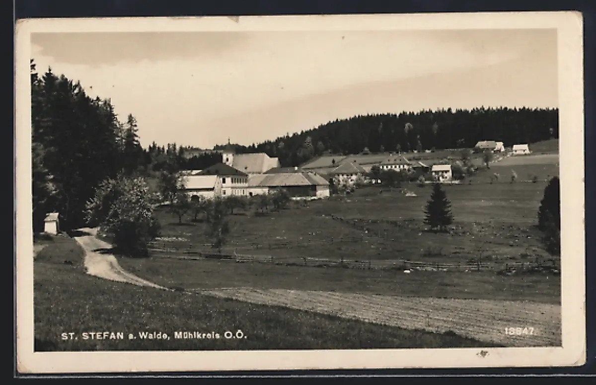AK St. Stefan a. Walde, Ortspartie mit Kirche