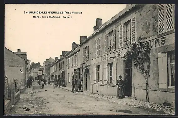 AK St-Sulpice-les-Feuilles, Hôtel des Voyageurs, La rue