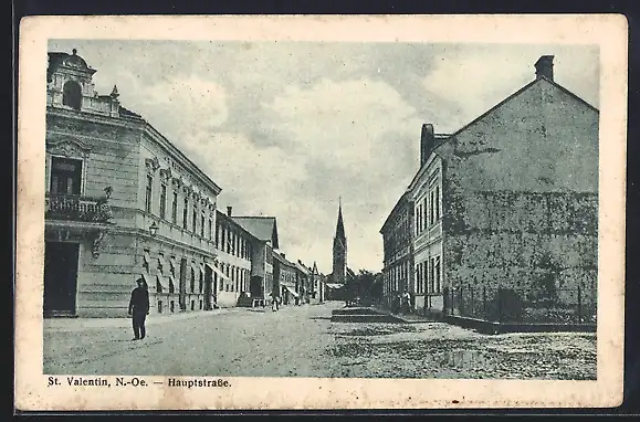 AK St. Valentin, Hauptstrasse mit Passant & Blick zur Kirche